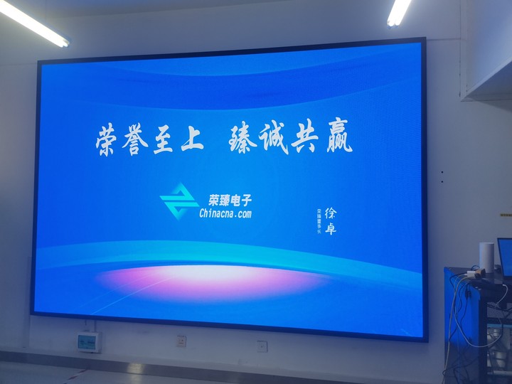 本項目案例是我公司(榮臻電子)在東北地區某公司安裝的P2.5LED小間距全彩顯示屏項目,項目的具體展示效果如下: